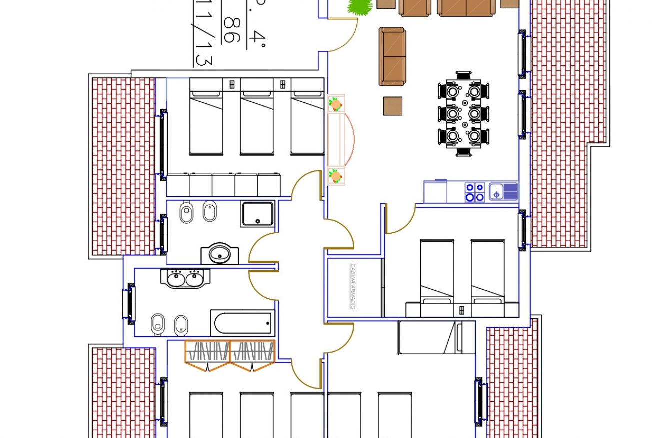 Appartamento con n°3 camere da letto triple + una doppia + divano letto in soggiorno + angolo cottura + bagno