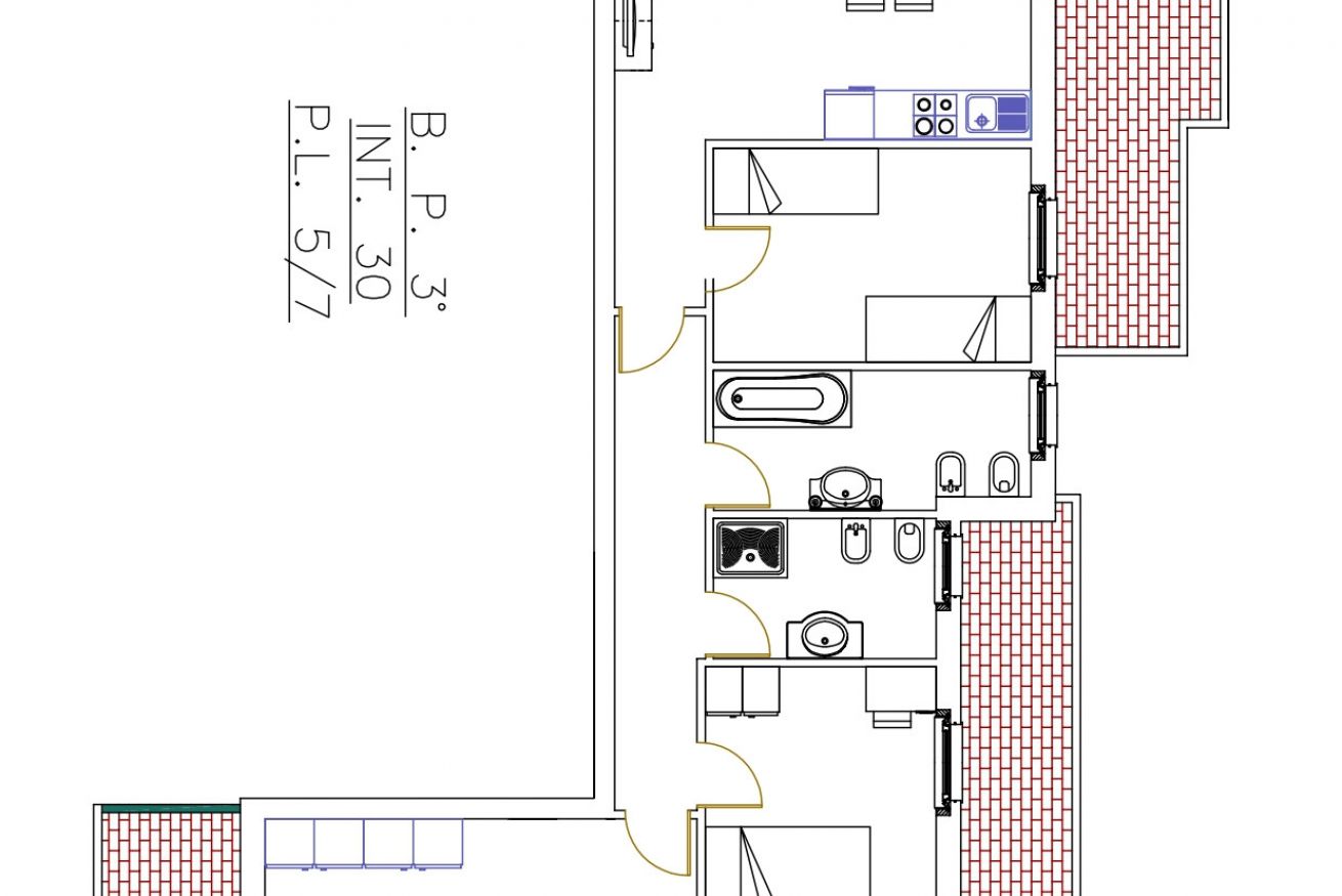 Appartamento con n°2 camere da letto doppie + una camera da letto singola + divano letto in soggiorno + angolo cottura + n°2 bagni.